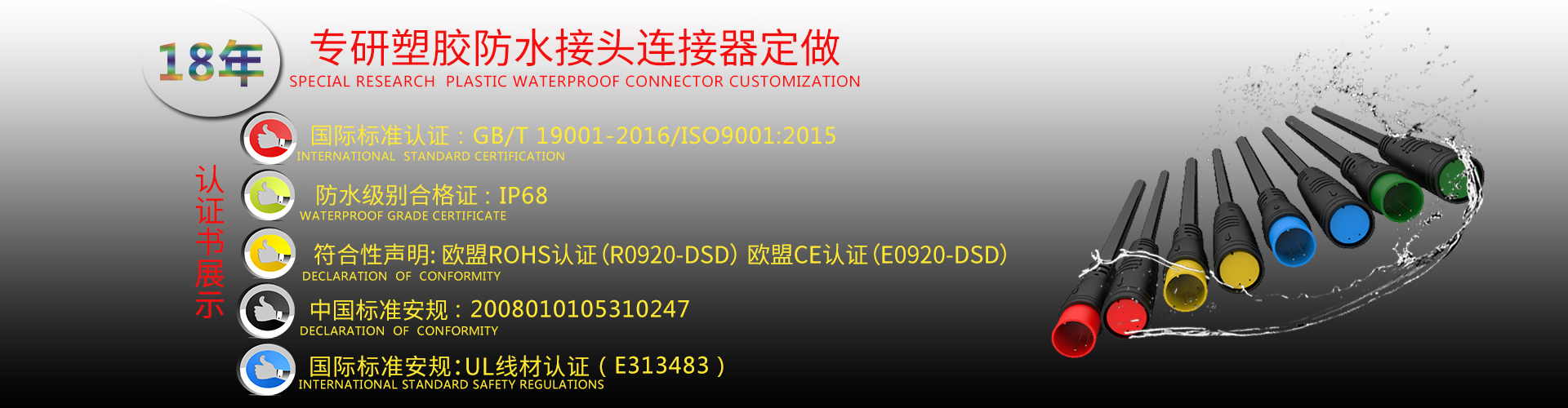 成立于2002年,坐落于設(shè)計之都中國廣東省深圳市。公司致力于LED防水連接器、衛(wèi)浴防水連接器、燈具防水連接器、太陽能防水連接器、地暖防水線、路燈防水線、電動車防水線、防水連接線材、工業(yè)防水插頭等各類連接線開發(fā)、設(shè)計、生產(chǎn)、銷售的專業(yè)廠家,產(chǎn)品廣泛應用于工業(yè)、安防、電腦、通訊、家電、機電、汽車、LED等各種電子產(chǎn)品中,主要包括:生產(chǎn)及加工2.54、2.0 、2510、3.96、5.08、SAN/SCN、XH 、PH 等各系列連接線,幾百多種規(guī)格的電子接插線、LED、防水線,并可按客戶要求開發(fā)、設(shè)計、制造。